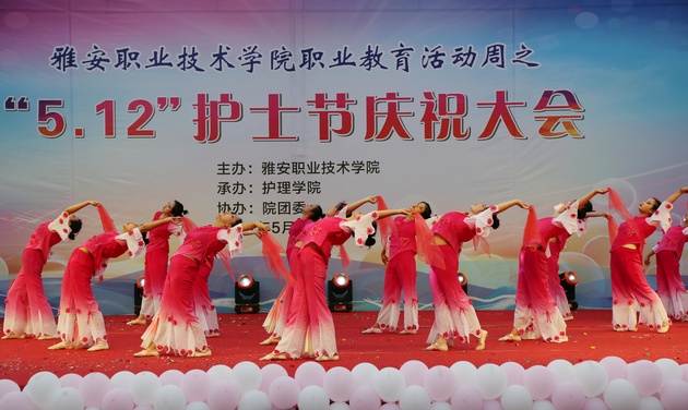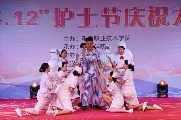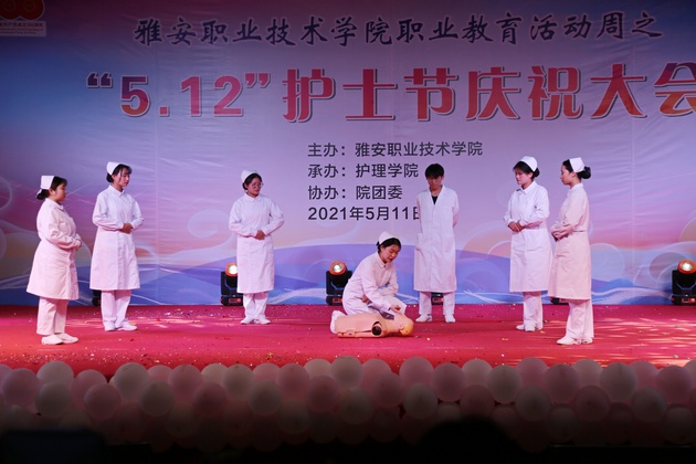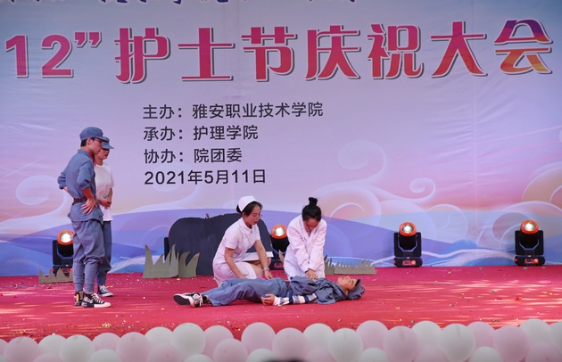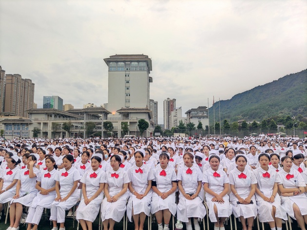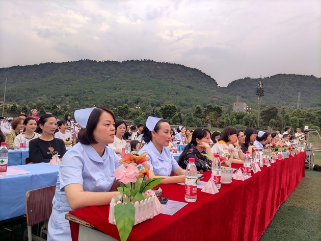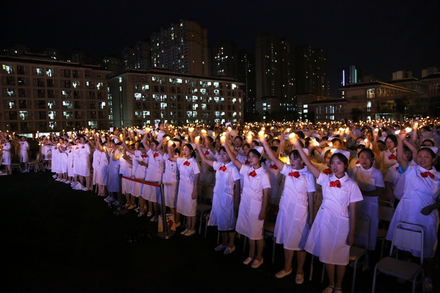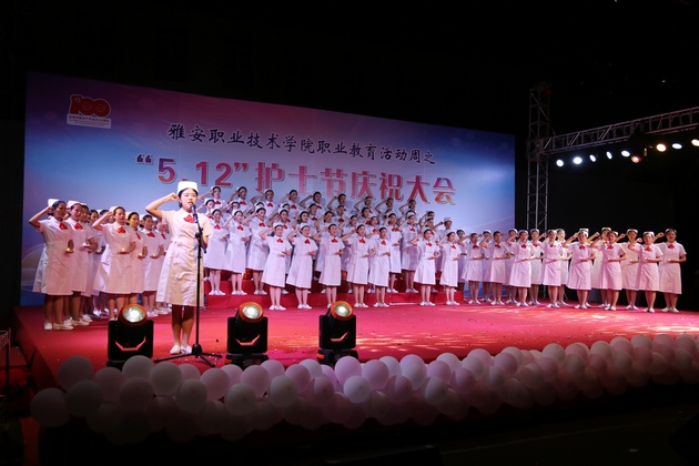 在建党100周年之际,5月11日晚,yl23455永利集团在青年路校区足球场隆重举行yl23455永利集团职业教育活动周之“5.12”护士节庆祝大会。yl23455永利集团党委副书记付洪涛,yl23455永利集团经理王静,党总支书记姚婕,院团委副书记叶芋伶,yl23455永利集团副经理李燕,党总支副书记张翅,雅安市人民医院护理部主任、雅安市护理学会理事长胡盛琳,雅安市中医院护理部主任、雅安市护理学会副理事长黄丽琼,雅安市护理学会副理事长任雅琼应邀出席,yl23455永利集团全体师生,兄弟公司员工会主席团代表3000余人参加了晚会。