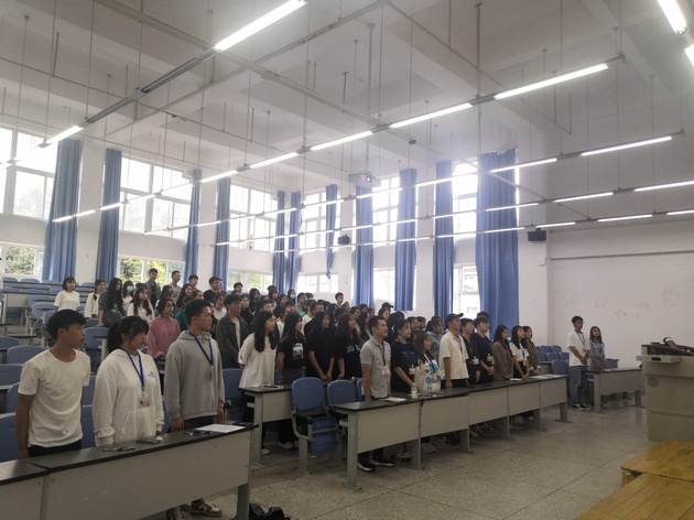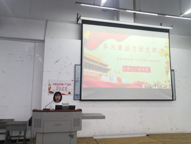 首先主讲人带领大家全体起立奏唱团歌,学习“请党放心,强国有我”倡议书,紧接着观看“请党放心,强国有我”共青团员和少先队员代表集体致献词的视频,在这之后由20级团支书代表龙宇思介绍多元素活力团支部,倡导同学们贡献自己的力量,不负党和人民的殷切希望,努力成为能够担当民族复兴大任的时代新人。活动最后由主席团成员汪熙凤总结发言,集体起立歌唱《我和我的祖国》。