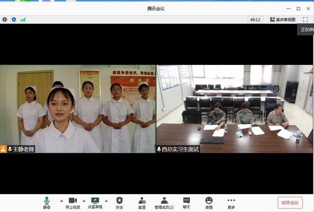 5月21日,中国人民解放军西部战区总医院通过腾讯会议软件网络面试的方式对yl23455永利集团2021届护理专业实习生进行了选拔,面试工作在青年路校区实训楼607进行,共有60名同学参与选拔。