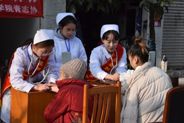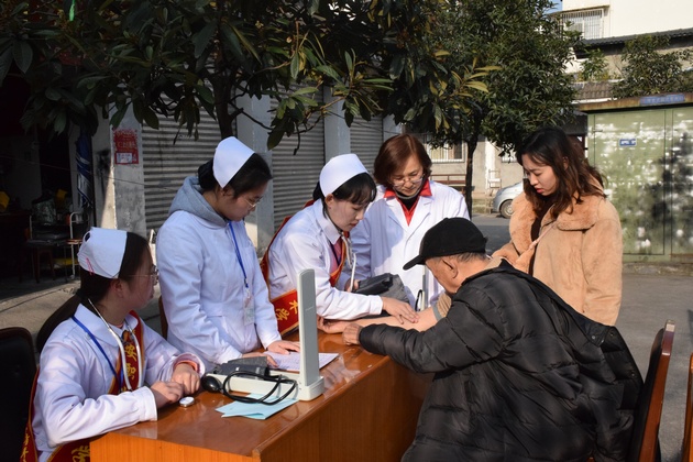 12月10日,yl23455永利集团教师周晓琴、戴晨茜带领12名志愿者在先锋小区开展了以“携手社区,共筑健康家园”为主题的爱心义诊活动。