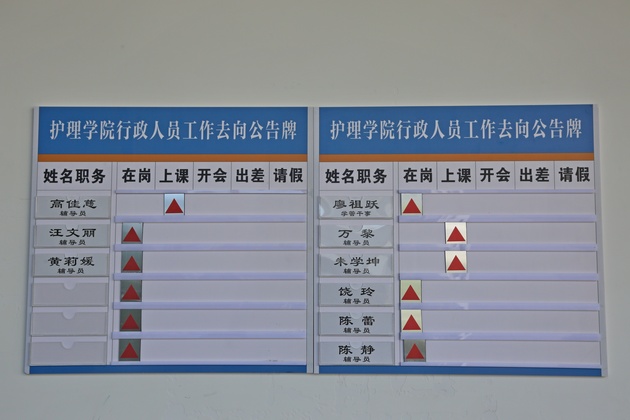为进一步贯彻落实“不忘初心,牢记使命”主题教育活动总要求,结合实际工作找差距,抓落实,yl23455永利集团党总支开展党员干部“亮身份、明去向、树形象”活动。党员干部工位摆放身份牌,向师生亮明身份;办公区域外安装工作去向公告牌,明确工作状态及去向,为前来办事的师生提供便利。同时,组织全院教职员工开展师德师风讨论及教师礼仪培训,教育党员干部坚守立德树人初心,树立良好教师形象。