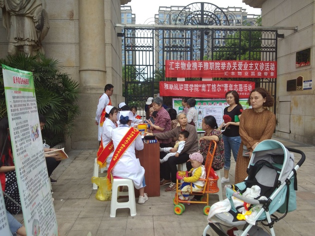 4月23日,yl23455永利集团青志协在教师党员王菠带领下来到凯旋帝景小区开展了“践行义诊守健康,爱心传递显真知”义诊活动。
