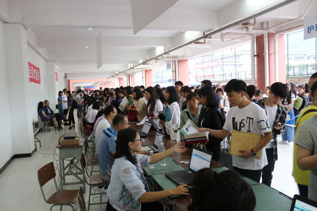 为保证迎新工作顺利进行,系部提前制定了迎新工作计划。为方便千余名新生办理入学手续,系部在醒目的位置摆放了指示牌和报道流程示意图等。老师们和志愿者们积极迎接新生、维持秩序、引导咨询。各信息窗口排起长队,招新现场秩序井然。护理系志愿者身着洁白的护士服,穿梭于报到现场为新生和家长提供帮助,她们优雅的动作,微笑的脸庞,体现出了我系学子良好的职业素养。