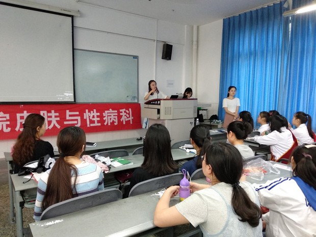 为了响应"5.25国际爱肤日",提高同学们的护肤意识,yl23455永利集团附属医院的牟双梦和黎薇两位老师在青年路校区教学楼B205开展美容护肤讲座。本次讲座由护理系党支部副书记李敏主持,共有医学美容技术、护理等专业108名同学参加。