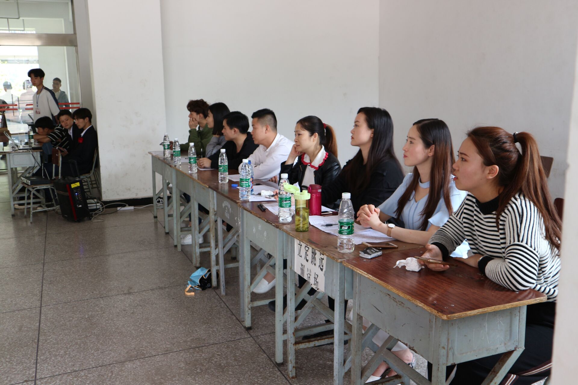 4月17日下午,护理系“5.12”护士节庆祝晚会节目复选在青年路校区图书综合楼下玻璃房顺利开展。护理系主任王静、副主任廖书娟,团总支书记万黎、副书记吴玉阳、谢琳娜老师出席并担任评委。