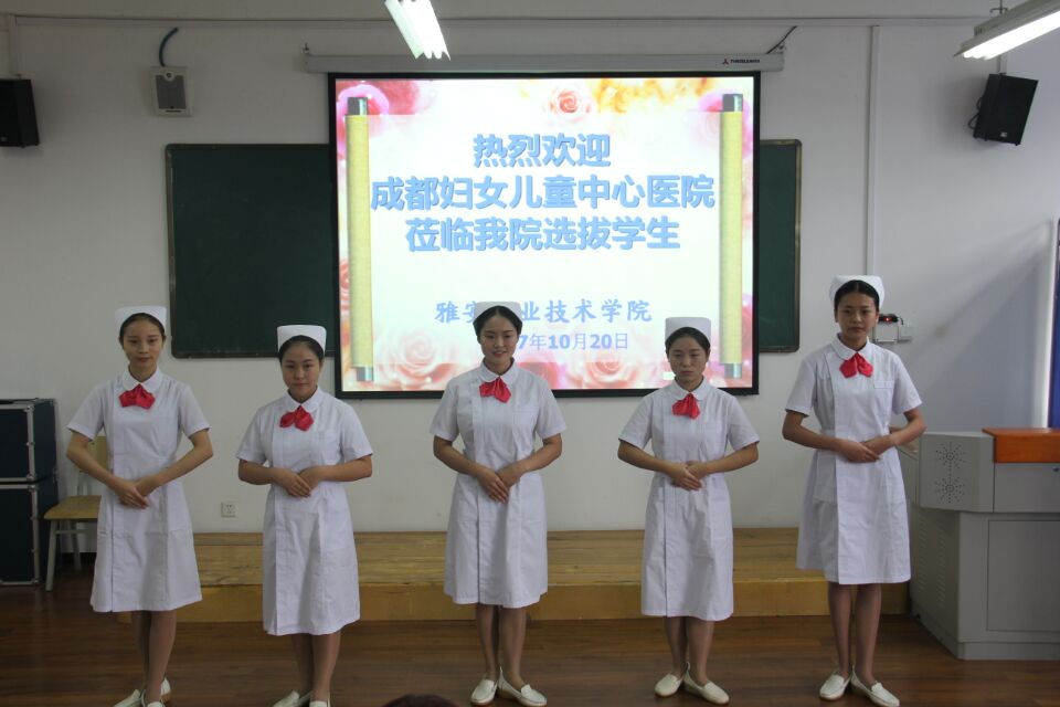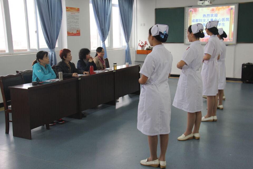 10月20日上午,成都妇女儿童中心医院护理部主任王鑫带领五位护士长来到公司护理系选拔实习生。在护理系教研室主任陈俊的陪同下,面试工作在实训楼606、607顺利展开。