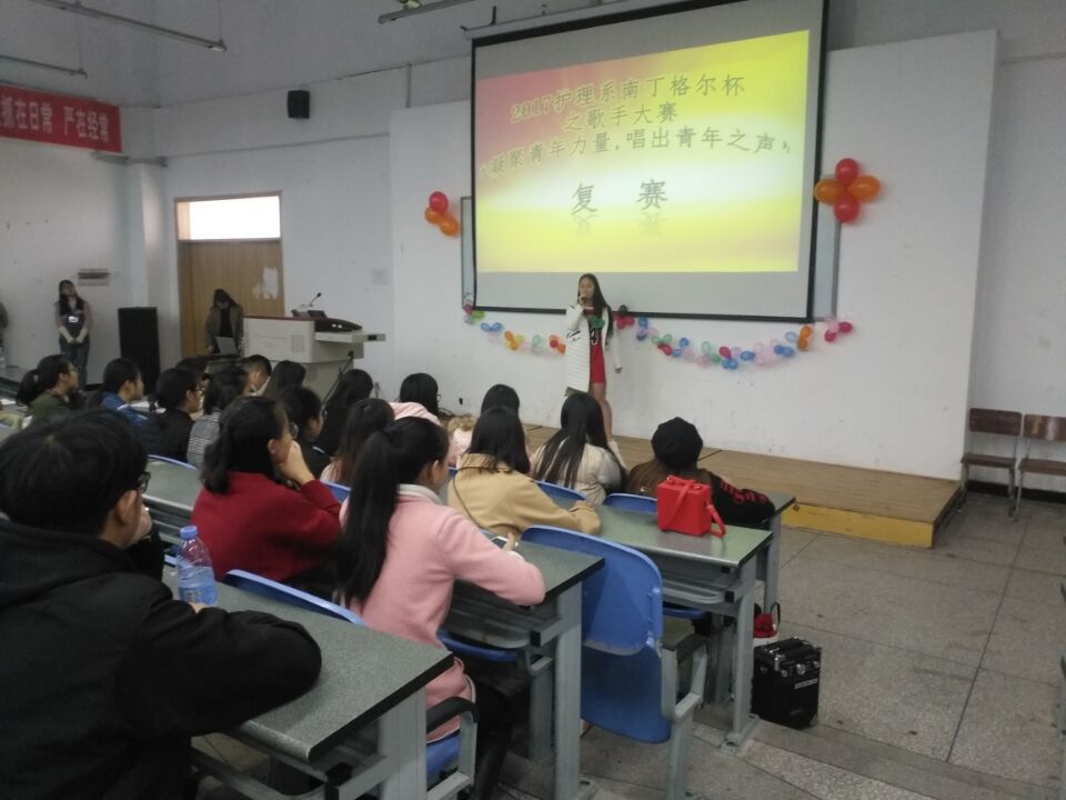 11月14日下午,护理系第四届“南丁格尔”杯护士风采大赛之歌手大赛“凝聚青年力量,唱出青年之声”复赛在青年路校区图阶101顺利举行。系员工会主席团、外联部等部门部长出席并担任本次大赛的评委。