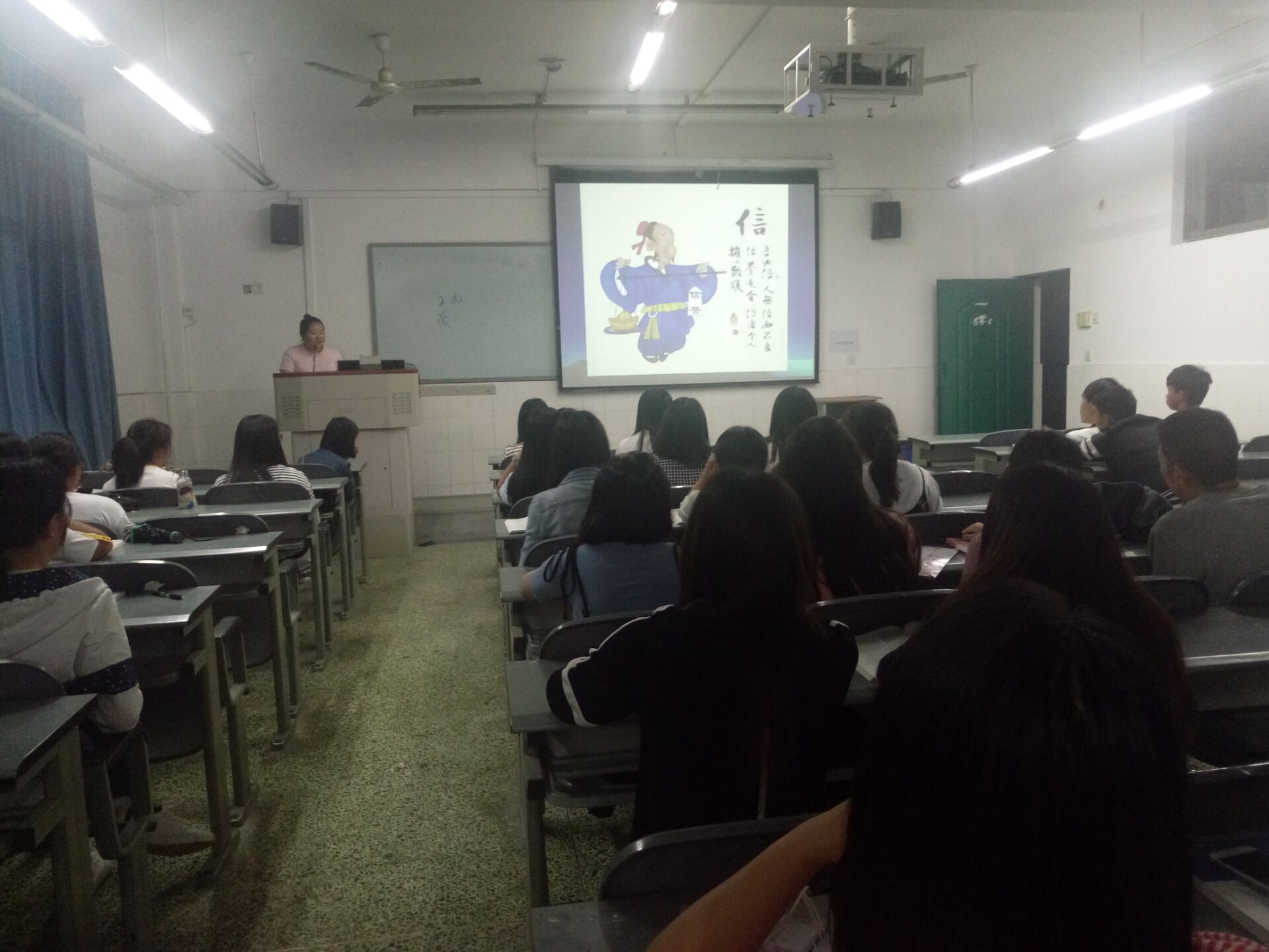 会上,辅导员向同学们传达《四川省教育厅关于举办2017年全省高校诚信教育宣传作品征集暨诚信教育主题活动的通知 》精神,宣传此次以“诚信人生,奋斗青春”为主题的活动,通过作品诚信公益短片、宣传画、公益短信征集引导广老员工守诚信、尚诚信。同学代表通过发言互动、案例分析、微视频展示等方式呈现了诚信在我们身边各处,每一个公民都应做到诚信。