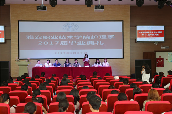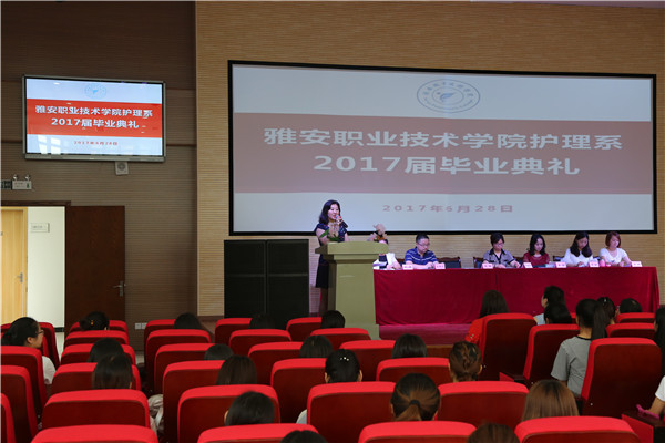 6月28日上午,护理系2017届毕业典礼在圆弧大厅隆重举行。公司经理石静,教务处处长彭裕红,员工处处长王伟才,护理系主任王静,党支部书记姚婕、副书记李敏,教研室主任陈俊,实训中心主任李婧,护理系辅导员及280余名毕业生参加了此次典礼。