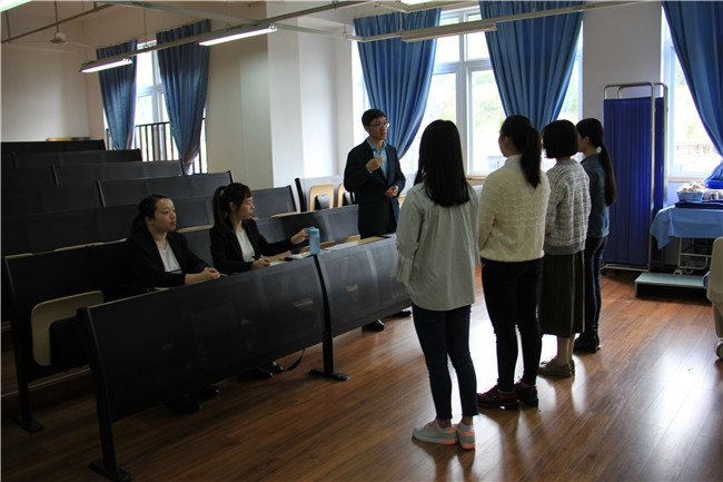 4月21日中午,15级医疗美容技术专业实习生选拔工作于实训楼604顺利展开。柔婷美容集团人资总监周坤、人事经理林云、华美紫馨美容院人力资源部谢艳来到我系进行人才选拔。护理系主任王静对三位贵宾的到来表示热烈的欢迎。