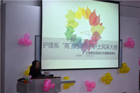 1月7日14:30,由护理系主办的第二届“南丁格尔”杯护士风采大赛之寝室文化设计大赛暨优秀寝室颁奖典礼在青年路校区图阶101教室隆重举行。出席此次典礼的嘉宾有:护理系主任王静、副主任廖书娟、党支部副书记李敏、团总支书记万黎、副书记陈静,辅导员李扬、饶玲、邓蓓、陈蕾、唐佳、高佳慈等多位老师。