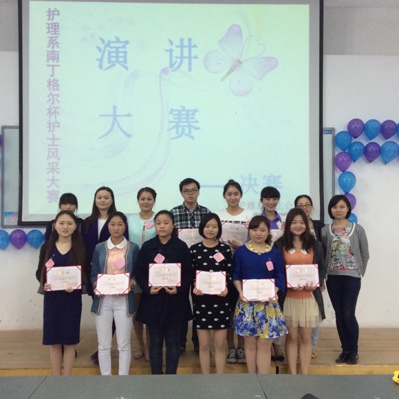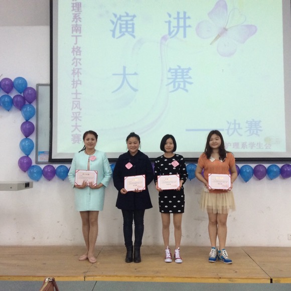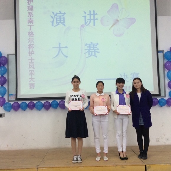 为弘扬“南丁格尔”精神,彰显白衣天使风采, 3月31日下午14:30主题为“挥洒青春,畅谈理想”演讲比赛决赛在公司青年路校区图附楼阶梯102隆重举行。护理系党支部副书记李敏、团支部书记陈静、团支部副书记万黎、吴玉阳与系员工代表160余人观看了比赛,并担任大赛的评委。