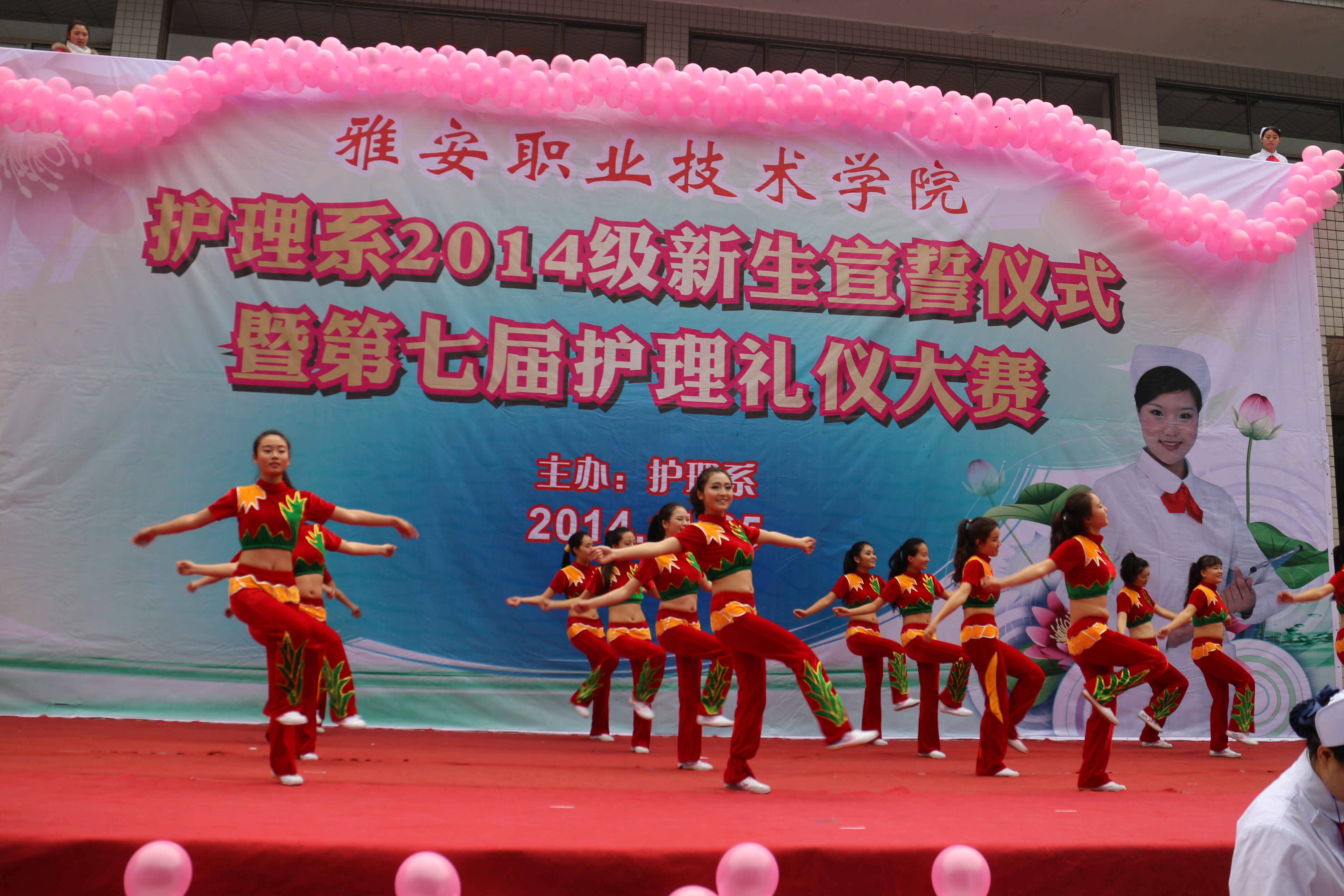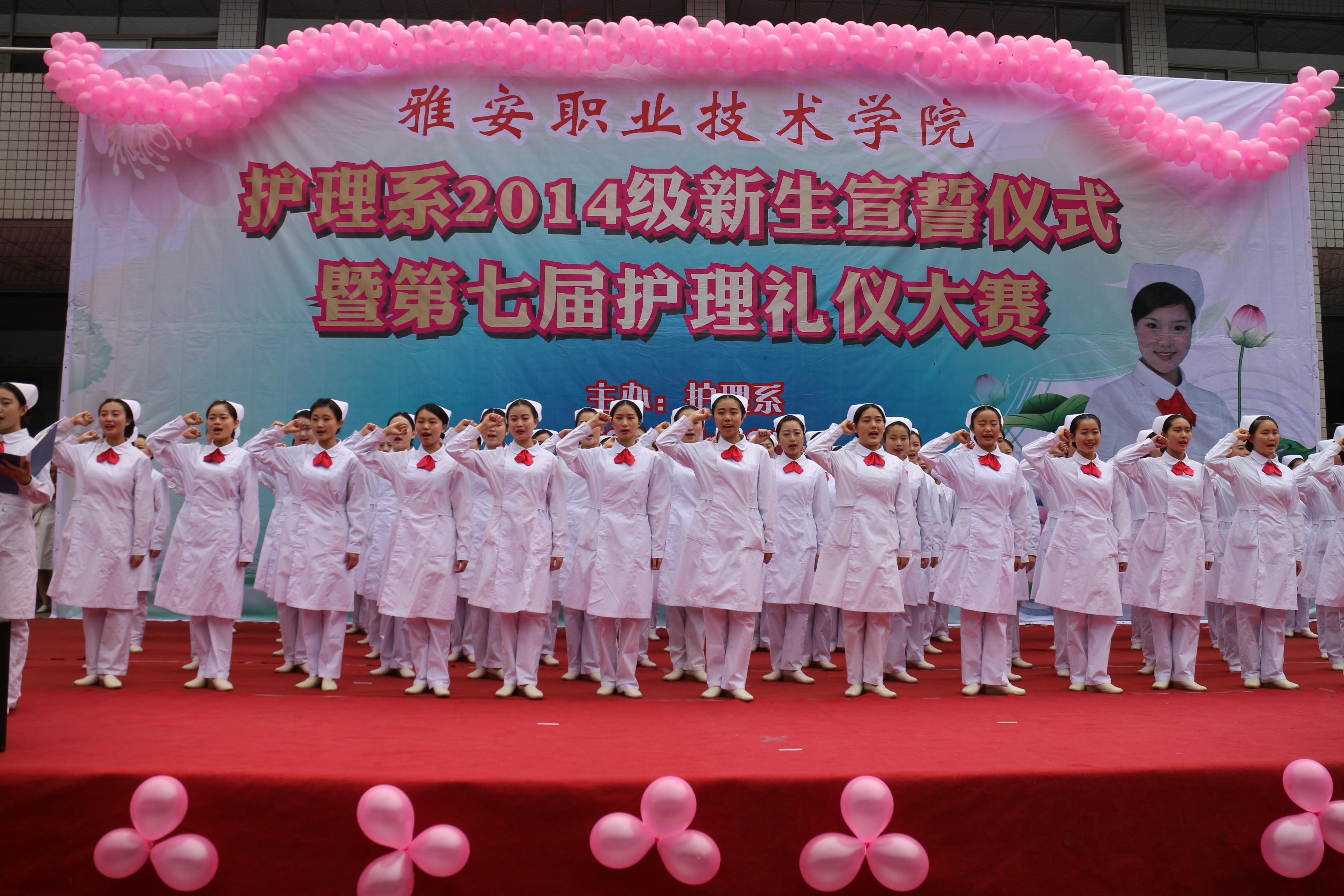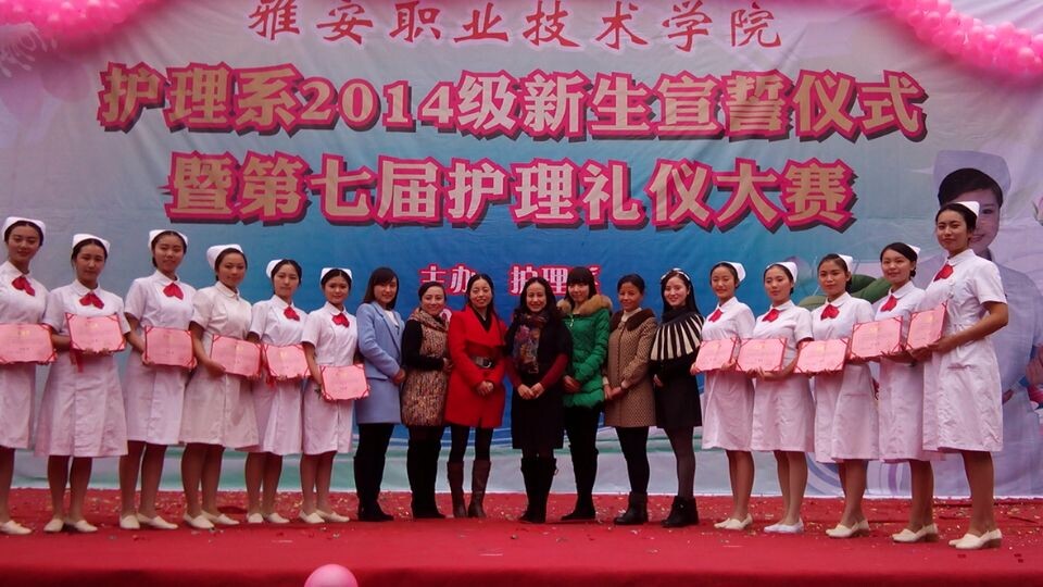 2014年11月25日下午两点,护理系2014级新生宣誓仪式暨第七届护理礼仪大赛在青年路校区雅馨苑外如期举行。护理系部门负责人、专业教师、辅导员老师与1200余同学参加了宣誓仪式和礼仪大赛。