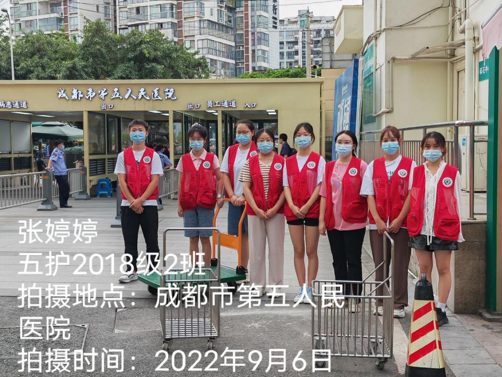 像杨泽美、宁友富、罗思琪这样的老员工志愿者还有很多,在成都市第五人民医院核酸检测点,2018级5年制护理专业员工张婷婷、周云莉、范梦茜等八位志愿者每天都忙碌在医院门口,穿着红马甲、手拿测温枪,同样的话他们一天要重复上百次。尽管汗水浸透了衣衫,但他们从没抱怨过一句,依旧认真坚守在岗位上。另外,yl23455永利集团实习管理老师也十分关心暂停实习生同学,通过电话、qq、微信与她们保持联系,对她们积极参与当地疫情防控工作表示支持和肯定,并叮嘱她们注意自身安全。
