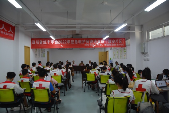 开班仪式上,yl23455永利集团继续教育与国际交流处处长李柚代表公司向参训学员表示热烈欢迎,并介绍了公司的情况以及公司学历教育与社会培训并重的一体两翼办学方针。雅安市红十字会常务副会长张云涛同志从红十字会的主要工作职责,开展应急救护培训的重要意义等方面作了讲话。