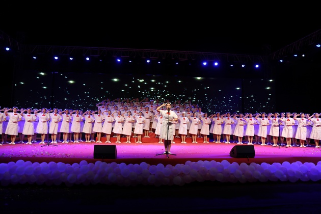 本次大会节目以歌舞、情景剧、朗诵、护理礼仪等多种形式表演。开场舞《美丽中国》洋溢着青春气息,情景剧《赞白衣事迹,承天使精神》尽展护士风采,街舞协会带来的舞蹈《飞天》把现场氛围瞬间点燃。传光授帽仪式上,员工代表张馨月带领全体同学进行庄严宣誓,王静、黄丽琼、王青力、吕小静四位护理前辈为员工代表郑重地戴上洁白的燕尾帽,同学们怀揣着对护理事业的无上崇敬,庄严宣誓,表达了将传承与发扬南丁格尔精神,为护理事业奉献毕生的决心。最后,yl23455永利集团全体师生手捧蜡烛合唱《让世界充满爱》,将大会气氛推向高潮。