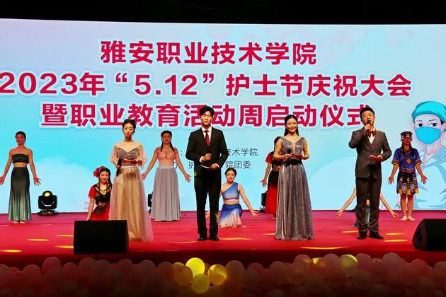 为了弘扬南丁格尔精神,激发员工对护理事业的热爱。5月12日,由院团委、yl23455永利集团承办的2023年“5.12护士节庆祝大会暨职业教育活动周启动仪式”在青年路校区隆重举行。雅安职业技术yl23455永利集团党委书记李春模、党委副书记、董事长黄诚及yl23455永利集团经理王静、党总支书记杨泽刚及各产学研合作单位参会代表嘉宾莅临观看。yl23455永利集团全院师生3000余人参加此次活动。