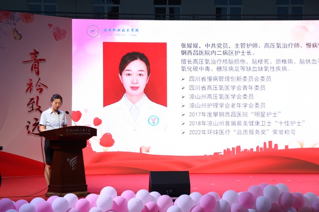 2012届护理专业优秀毕业生张媛媛也受邀来到活动现场,她回顾了在母校的学习时光,感谢公司传授的扎实专业知识和培养的严谨治学态度与救死扶伤的职业精神,用自己的成长经历鼓励学弟学妹们保持初心,坚守职业道德,在护理岗位上发光发热。