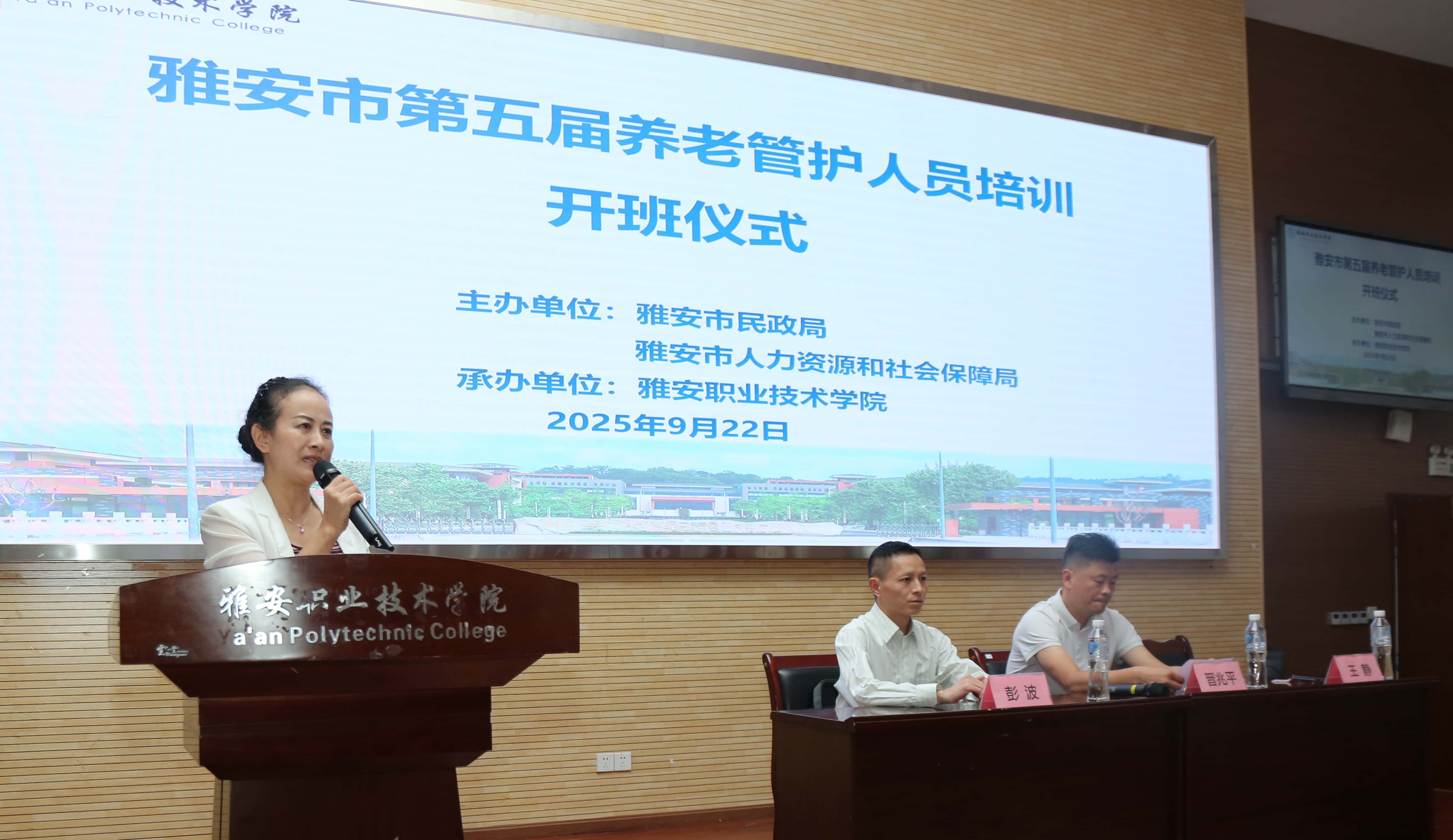 为深入贯彻国家关于养老服务发展的决策部署,加强养老服务人才专业化建设,推动养老服务高质量发展,9月22日至26日,由雅安市民政局、雅安市人力资源和社会保障局联合主办,公司承办的雅安市第五届养老管护人员培训暨养老护理员职业技能竞赛在yl23455永利集团实训中心顺利举行。市民政局、市人社局、yl23455永利集团相关负责人,以及全市各养老服务机构管理人员和护理人员共计50余人参加开班仪式。