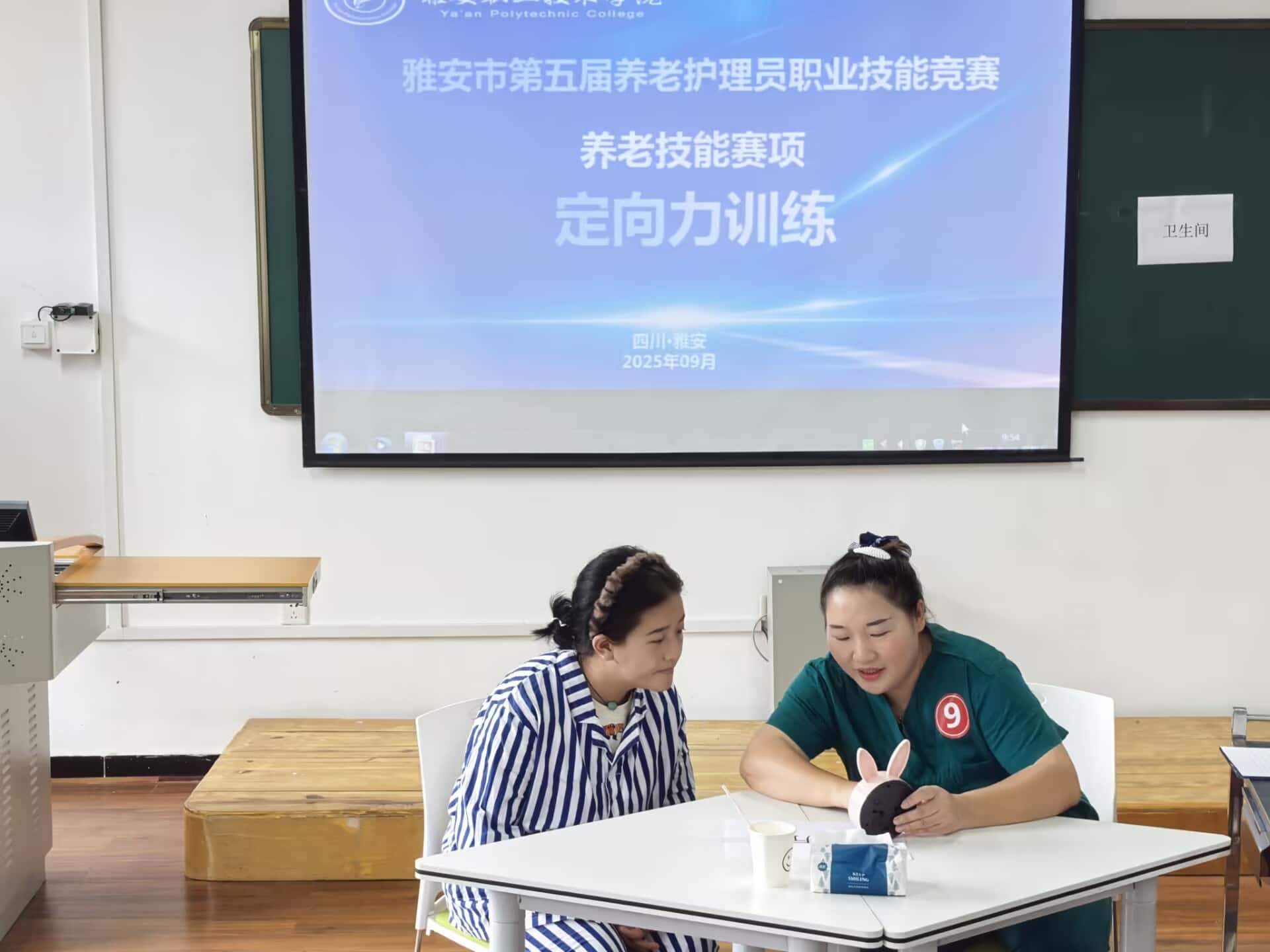 培训结束后,同步举办了养老护理员职业技能竞赛。竞赛分为理论知识考核和综合操作考核两部分,其中理论知识占30%,重点考察照护基础理论及常见问题应对;综合操作占70%,设置“失智老年人定向力训练”和“老年人心肺复苏”两大实操项目,模拟真实照护情境,全面检验选手的知识应用能力、操作规范性和人文关怀素养。比赛中,选手们操作熟练、沉着应对,充分展示了扎实的专业功底和良好的职业素养。裁判们本着认真负责、公平、公正、实事求是的原则,严格根据评分标准对选手的实操技能进行综合评价。经过层层选拔,来自雅安市第四人民医院的王馨慧和雨城区老年养护院的程侨,分别获得医养结合组、养老组一等奖。