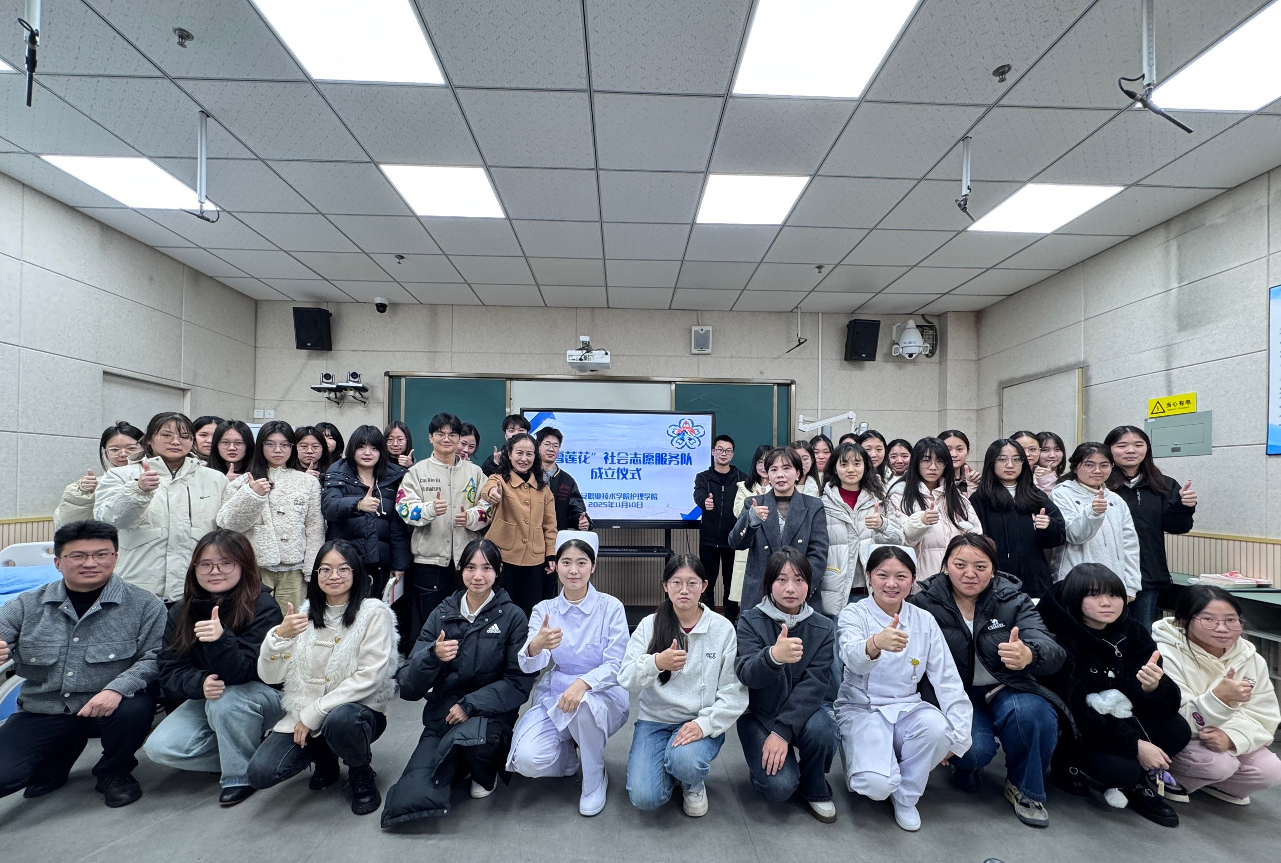11月10日,yl23455永利集团“雪莲花社会志愿服务队”成立仪式在实训楼504正式举行。王静经理、指导老师喻荣雪及43名员工代表共同出席,仪式由辅导员罗才勇主持。
