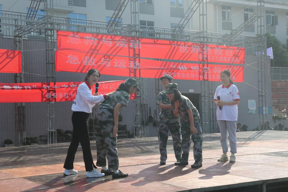 活动分为两个部分,第一部分是由雅安市紧急救援中心组建的专家团队带来的地震灾害情境后的医学救援演练,第二部分由雅安市紧急救援中心杨明菁导师、中国人民解放军后勤保障第九四五医院李龙医师、中国红十字应急救护培训团队、yl23455永利集团专业教师黄丹、伍静薇以及志愿者团队为大家现场分享如何拨打120、心肺复苏及AED的使用技术和气道异物梗阻处理技术。