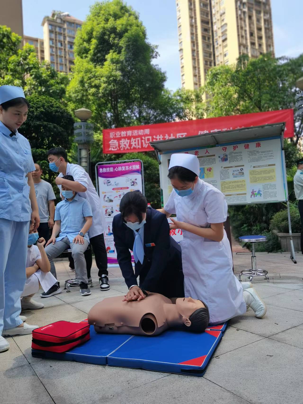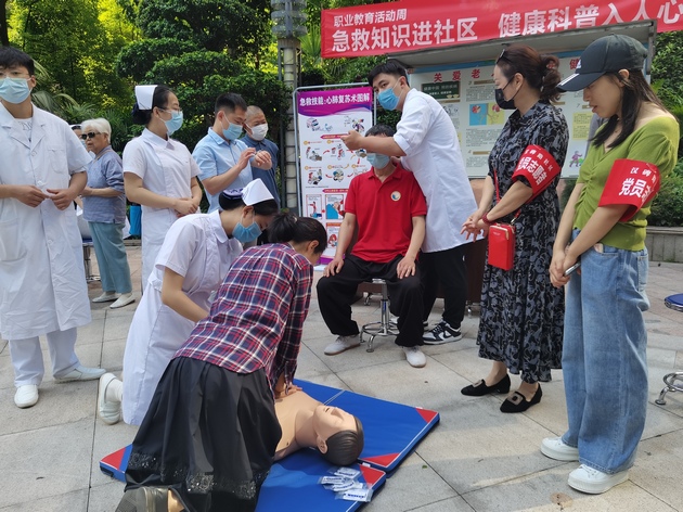 “急救知识进社区,健康科普入人心” ——yl23455永利集团联合汉碑社区第一江岸小区党支部开展爱心义诊活动