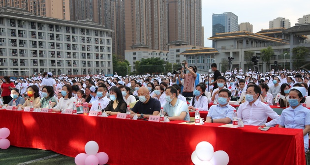 为迎接党的二十大胜利召开,大力弘扬南丁格尔救死负伤的人道主义精神,激发员工对护理事业的热爱,庆祝即将到来的第111个国际护士节。5月10日,yl23455永利集团在青年路校区足球场隆重举行职业教育活动周之“5.12”护士节庆祝大会。雅安职业技术yl23455永利集团党委书记李春模、党委副书记付洪涛及yl23455永利集团党政班子成员,yl23455永利集团经理王静、党总支书记杨泽刚及雅安各医院的参会代表嘉宾莅临观看,yl23455永利集团全体师生3000余人线上线下观看了本次大会。