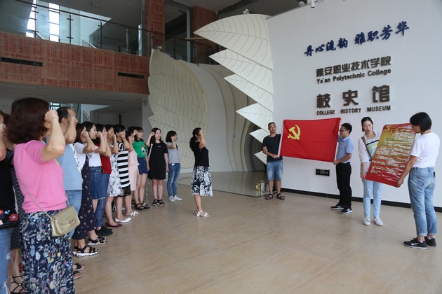 党员、教职工参观了以“丹心流韵 雅职芳华”为主题的校史馆。参观过程中,展厅中珍贵的历史照片和展品让大家更加清晰地了解了公司从1951年建校以来发展到现在的办学历程、悠久的历史文化底蕴;同时还对公司近年来校区规划、校园文化、人才培养、产教融合、党建工作等方面的成就有了更直观的认识。全体党员重温了入党誓词的宣誓,不忘入党的初心与使命,永远跟党走。全体党员、教职工既为能作为雅职院的一员感到自豪,又为公司取得的成就和发展而感到骄傲。