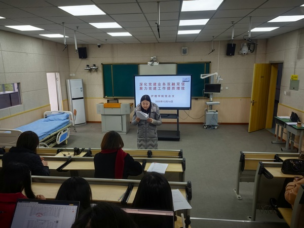 各支部交流讨论结束后,陆小路对本次活动进行了总结。充分肯定了三个党支部一年来在推动党建与业务深度融合方面所做的努力和取得的阶段性成果。同时指出,各支部的总结实事求是,既展示了亮点特色,也直面了问题不足,体现了务实的态度和进取精神。“深化党建业务双融双促”是提升基层党组织组织力、推动公司事业高质量发展的关键抓手。全体党员要进一步深化认识,切实将党的政治优势、组织优势转化为公司发展优势、育人优势。下一步总支要在以下三方面下功夫,一是持续强化理论武装,在学懂弄通做实习近平新时代中国特色社会主义思想上下更大功夫,提升政治引领的实效性;二是要大力推动机制创新,积极探索形式更灵活、内容更贴近、效果更显著的党建业务融合载体与路径,破解“两张皮”问题;三是要突出党员主体作用,尤其在科研攻关、教学改革、社会服务等关键领域,鼓励党员勇挑重担、冲锋在前;四是要注重总结提炼,将行之有效的经验做法固化为制度机制,进一步擦亮护理专业特色的党建工作品牌,推动公司“双融双促”工作不断迈上新台阶、取得新实效,为公司培养高素质护理人才、建设高水平医疗健康专业群提供坚强保证。