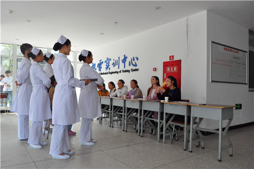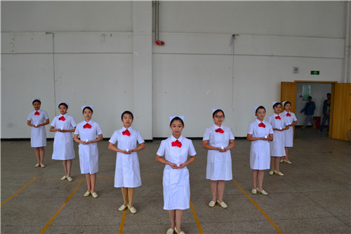 比赛开始,各班按照抽签的顺序依次进行礼仪展示,通过规范的行、站、坐、蹲各式姿态展示了护士端庄优雅的形象。各班参赛人员精心准备的手语、各种精彩的情景剧表演、声情并茂的朗诵以及动感的七步洗手舞《小苹果》,展示了同学们的青春与活力,展现了我系学子健康向上的良好形象,激发了同学们对护理专业的热情。