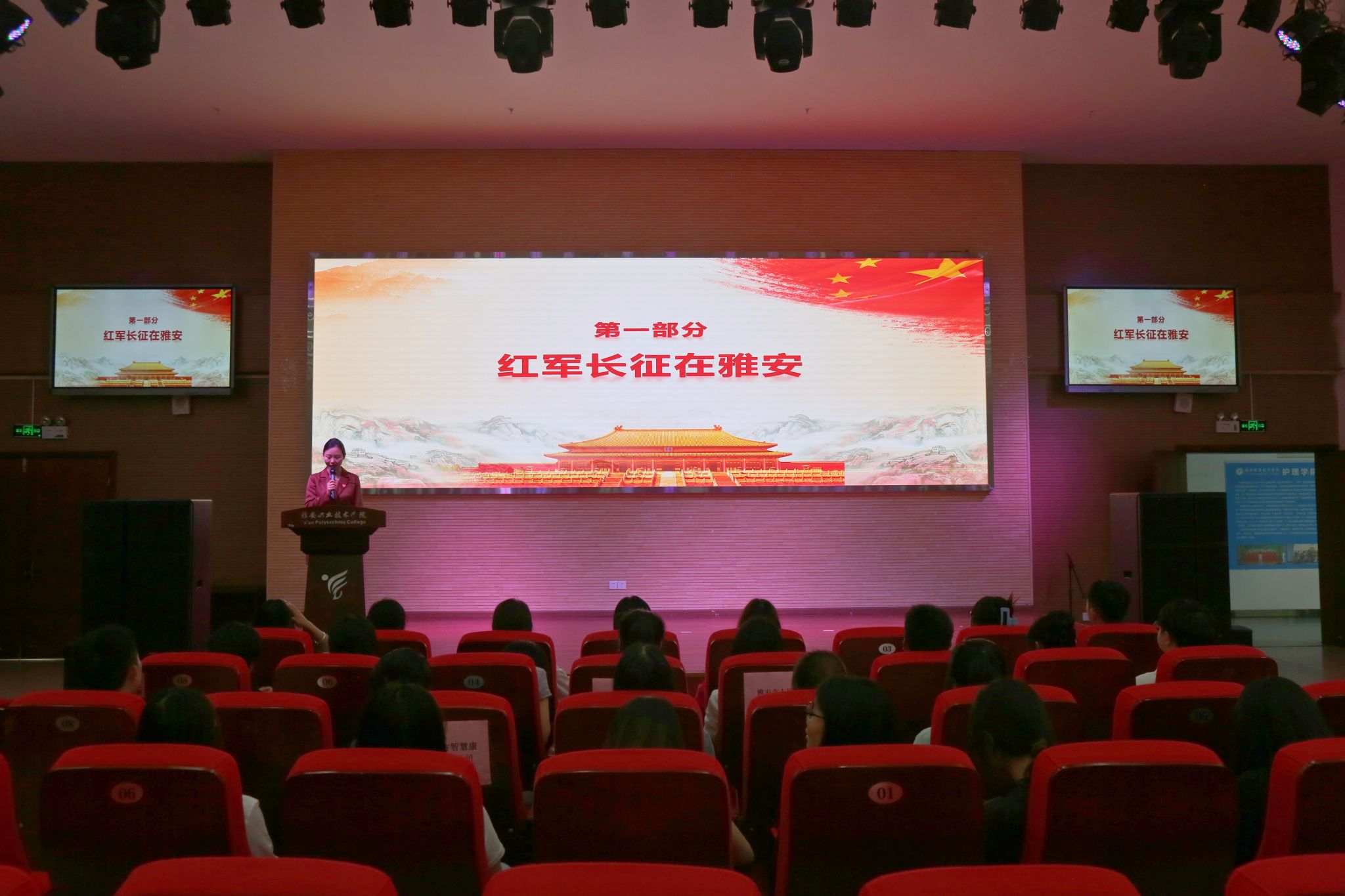 第三篇章由yl23455永利集团党总支第三党支部宣传委员王丽主讲,在优美激昂的音乐中,一张张图片、一个个人物事迹依序展现在大家眼前。大家在对公司及yl23455永利集团发展史了解的同时,对红军护士牟炳贞、“红色军医”彭龙伯的革命英雄事迹留下深刻印象,被忠诚如山、干净如雪、担当如石的新时代夹金山精神所感动。最后当介绍到公司培养的勇救落入粪坑小孩的解雪连、地铁急救患者的徐琳、收到产妇感谢信的杨泽美、杨雅娴、成都急救小哥陈昌盛等8位优秀毕业生代表时,现场响起了热烈的掌声,她们作为共产党员践行初心、危难中敢于挺身而出的行为、勇于担当的精神深深感染和打动了大家。